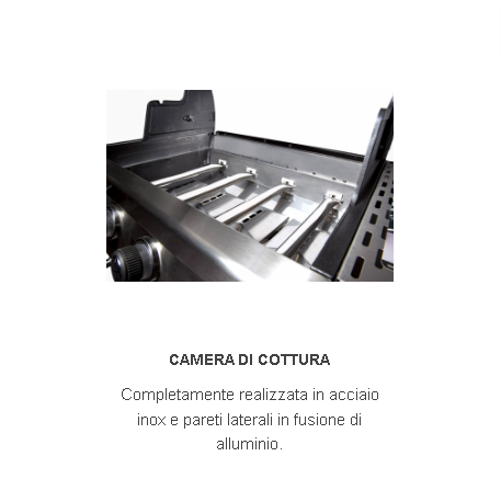 • Quattro bruciatori Dual-Tube™ da 13.20 Kw• Bruciatore laterale a Infrarossi da 2.70 Kw